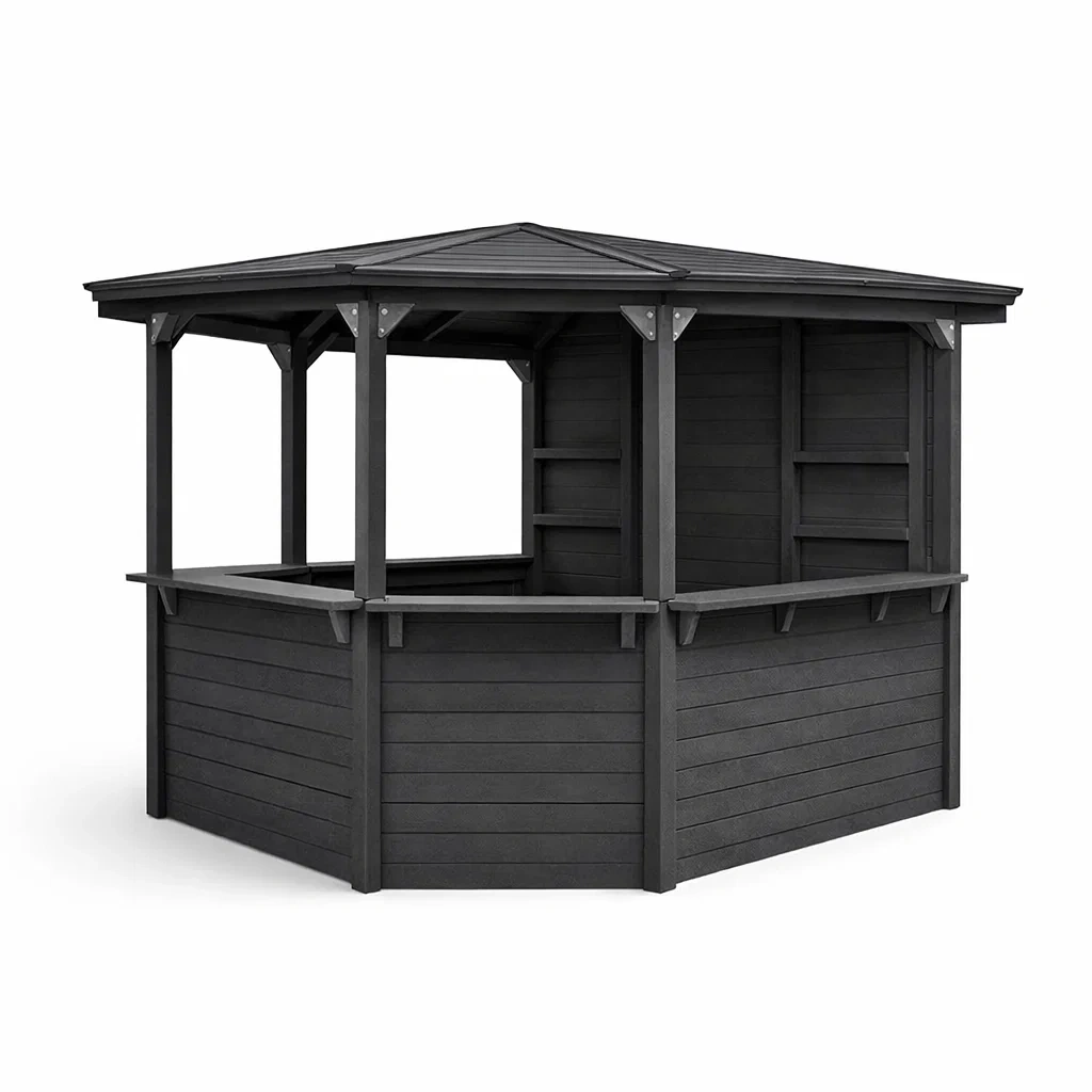 Kiosque bar de jardin hexagonal en bois de pin avec toit métal noir