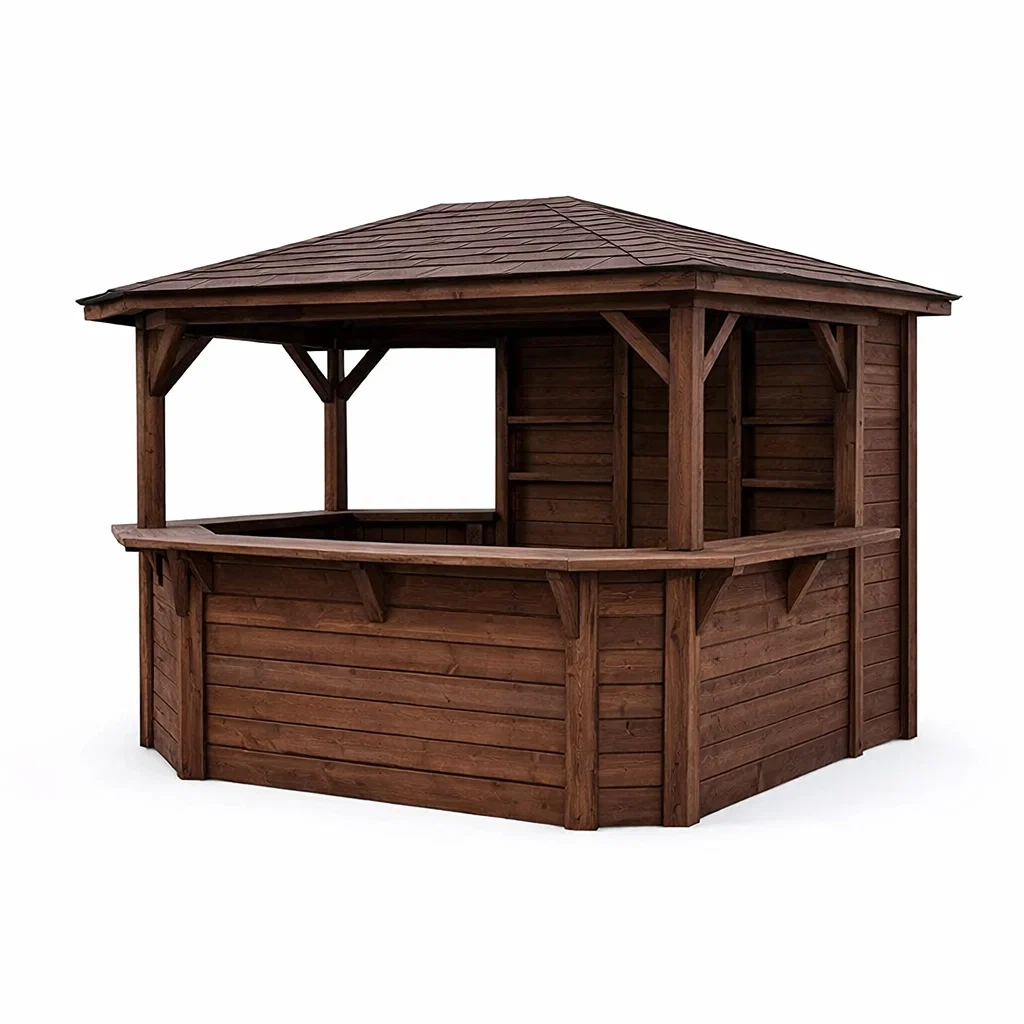 Kiosque bar de jardin hexagonal en bois de pin avec toit et bar