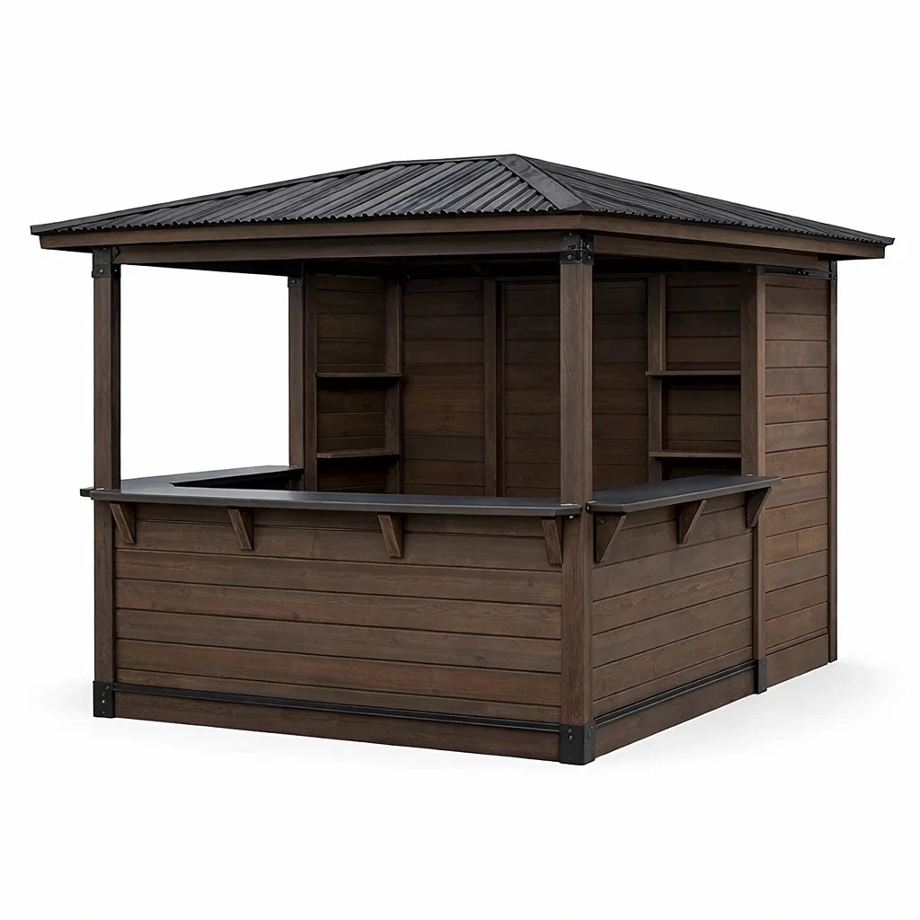 - Composants : Kiosque avec comptoir et étagères intégrées